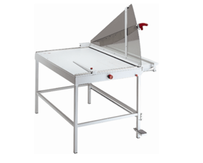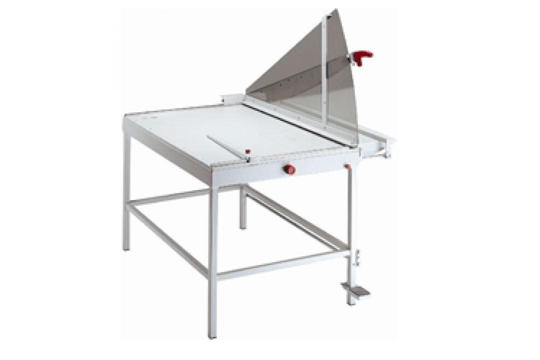 IDEAL 1100 giljotiinileikkuri on turvallinen ja tukevarakenteinen ratkaisu erilaisien materiaalien leikkaamiseen. Tässä leikkurissa on erityisesti kiinnitetty huomiota helppokäyttöisyyteen. Vakiona tulevan jalustan reunassa on jalkapedaali esipuristusta varten, jolloin leikkattavan tuotteen asetteluun voidaan käytää molempia käsiä.