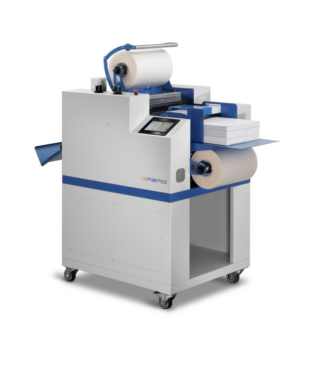 MAMO Plasti 350 EVO Yksipuolinen puoliautomaattinen laminointikone, jossa OPP-laminoidut arkit...