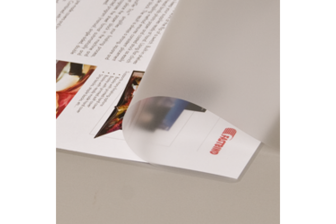 Korkealaatuinen, kiiltäväpintainen laminointitasku kuumalaminointiin.